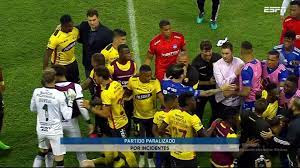 Las autoridades del cotejo resolvieron suspenderlo por falta de garantías, lanzamiento de objetos con impacto a los protagonistas y, además, trascendieron ataques raciales contra los jugadores amarillos.
